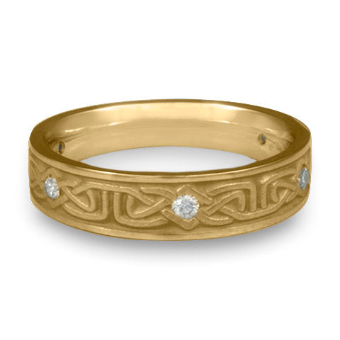Extra Narrow Labyrinth with Diamonds Wedding Ring in 14K Yellow Gold