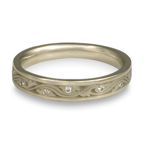 Extra Narrow Wind and Waves With Diamonds Wedding Band in 18K White Gold