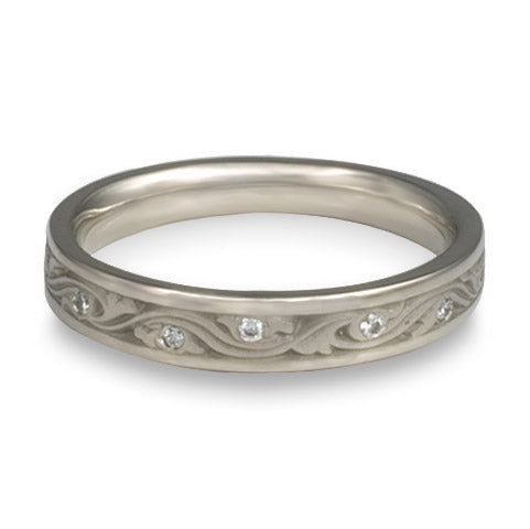 Extra Narrow Wind and Waves With Diamonds Wedding Band in Palladium