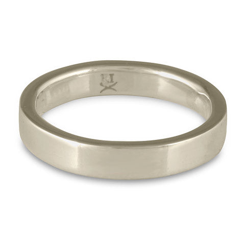 Flat Comfort Fit Wedding Ring, 14K White Gold 4mm Wide by 2mm Thick
