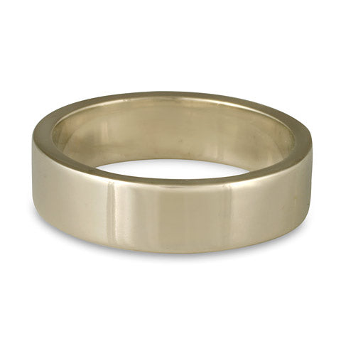 Flat Comfort Fit Wedding Ring, 18K White Gold 6mm Wide by 2mm Thick