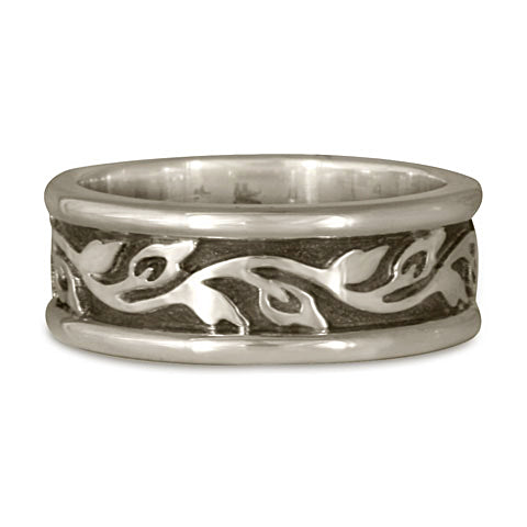 Medium Bordered Flores Wedding Ring in Sterling Silver
