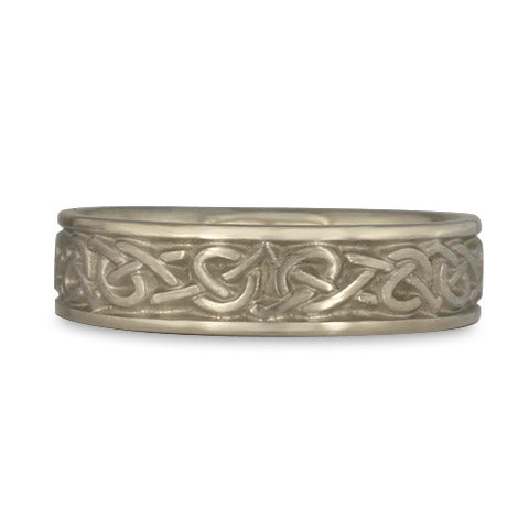 Narrow Celtic Hearts Wedding Ring in 18K White Gold