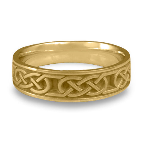 The Narrow Love Knot Wedding Ring carries an intrinsic meaning of depth in a relationship. This love knot symbolizes energy and complexity of two individual souls coming together, while maintaining a sense of harmony.
