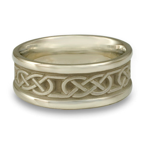 The Narrow Self Bordered Love Knot Wedding Ring carries an intrinsic meaning of depth in a relationship. This love knot symbolizes energy and complexity of two individual souls coming together, while maintaining a sense of harmony.
