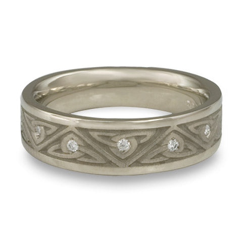 Narrow Trinity Knot With Diamonds Wedding Ring in 14K White Gold
