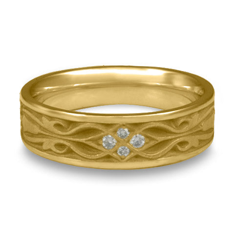 Narrow Tulip Braid Wedding Ring with Diamonds in 14K Yellow Gold