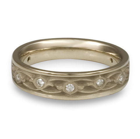 Narrow Water Lilies Wedding Ring With Diamonds in 14K White Gold