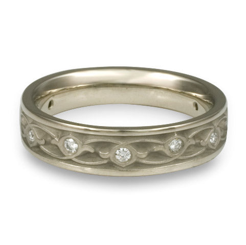 Narrow Water Lilies Wedding Ring With Diamonds in Palladium