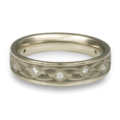 Narrow Water Lilies Wedding Ring With Diamonds in Platinum
