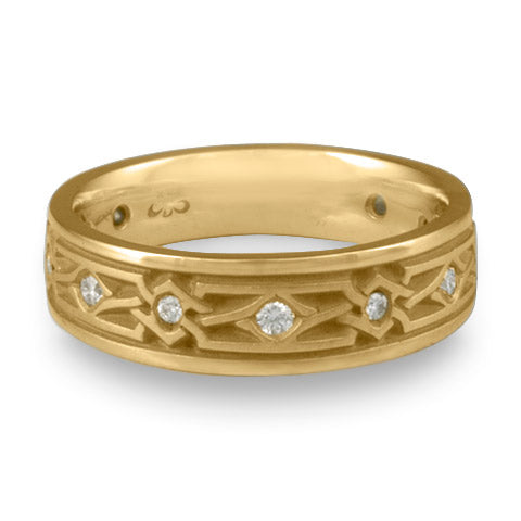 Narrow Weaving Stars With Diamonds Wedding Ring in 14K Yellow Gold