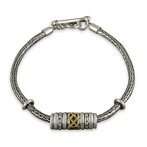 This bracelet, with it soft and luxurious hand woven chain, is eminently wearable-- the sort of jewelry that you can put on and never take off.