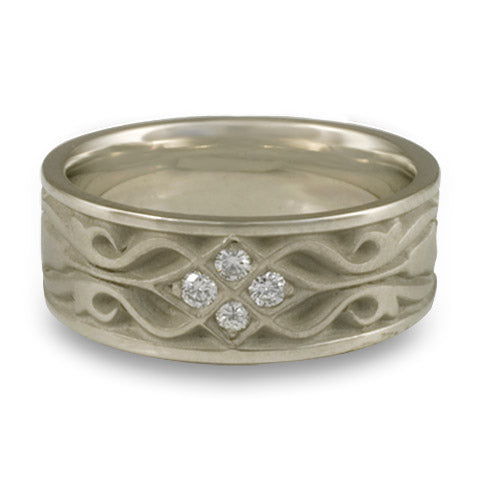 Wide Tulip Braid Wedding Ring with Diamonds in 14K White Gold