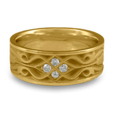 Wide Tulip Braid Wedding Ring with Diamonds in 14K Yellow Gold