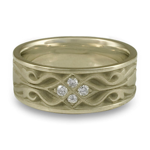Wide Tulip Braid Wedding Ring with Diamonds in 18K White Gold