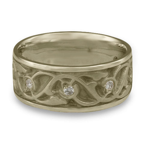 Wide Tulips and Vines Wedding Ring With Diamonds in 18K White Gold