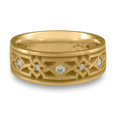 Wide Weaving Stars with Diamonds Wedding Ring in 14K Yellow Gold