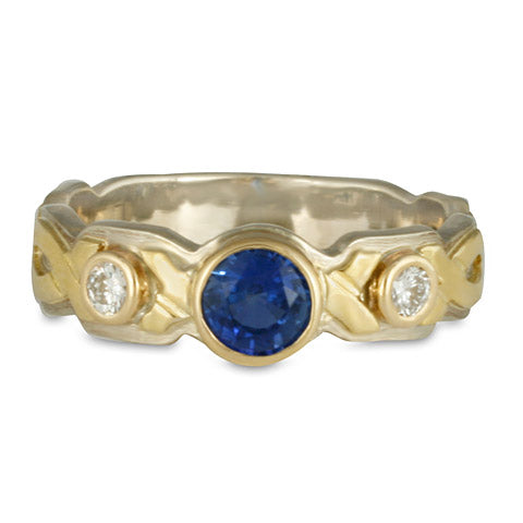 Wrap Solitaire Two Tone Gold Ring with Sapphire and Diamonds