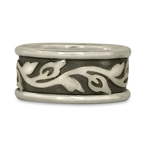 Wide Bordered Flores Wedding Ring in Sterling Silver